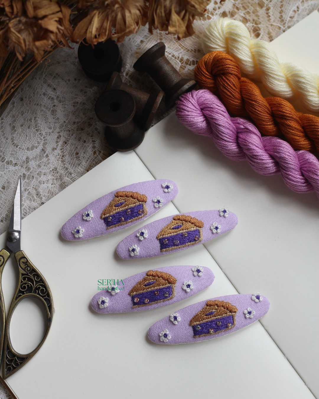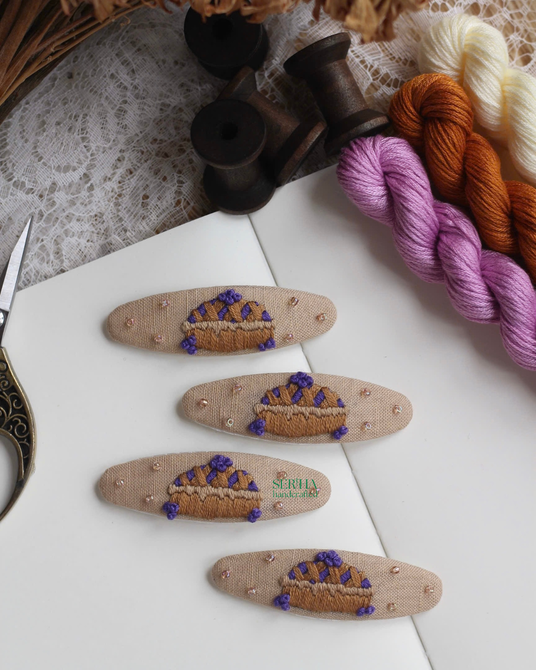 Hand-Embroidered Hairpins.