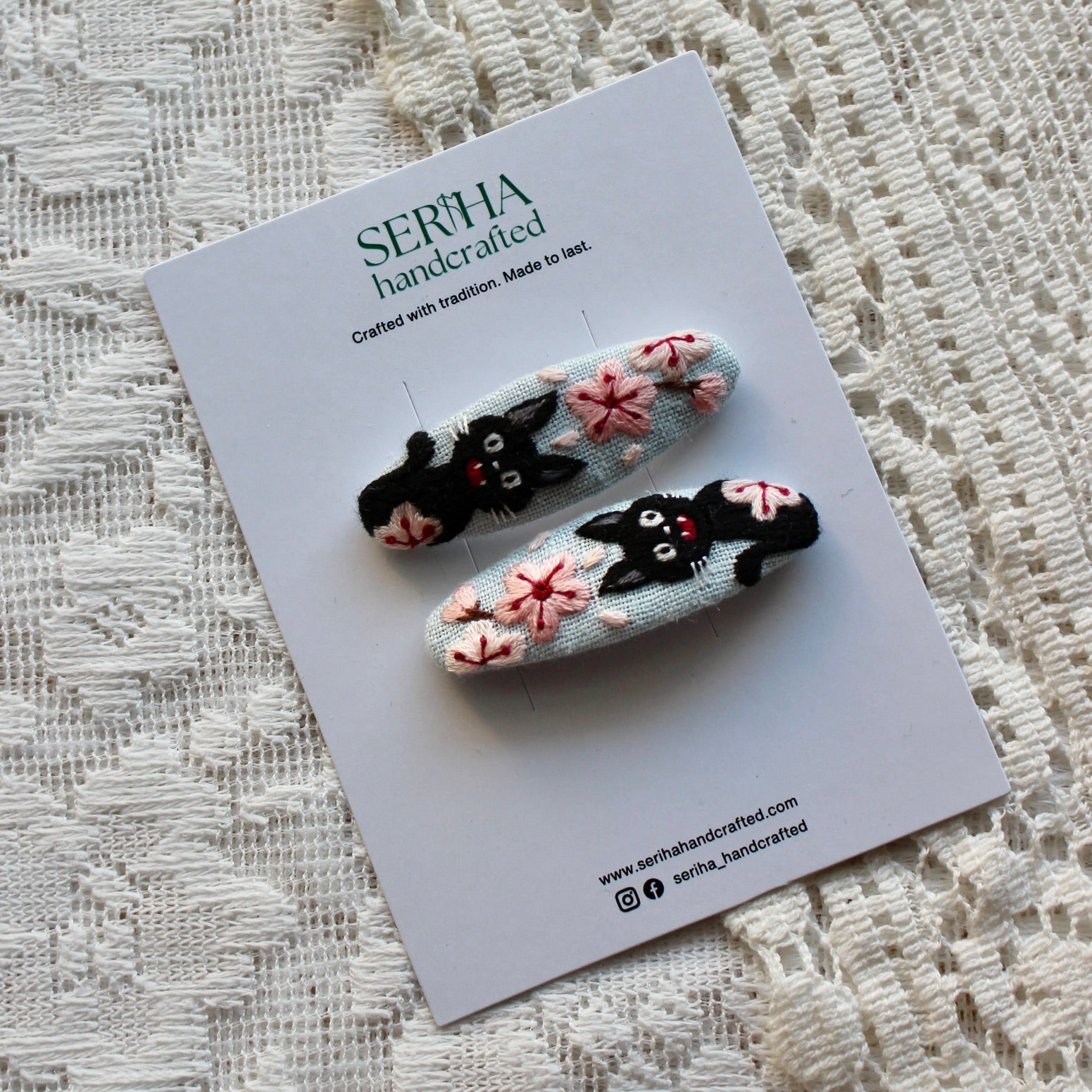 Hand-embroidered hairpin. Anime-themed hairpins are sold individually.