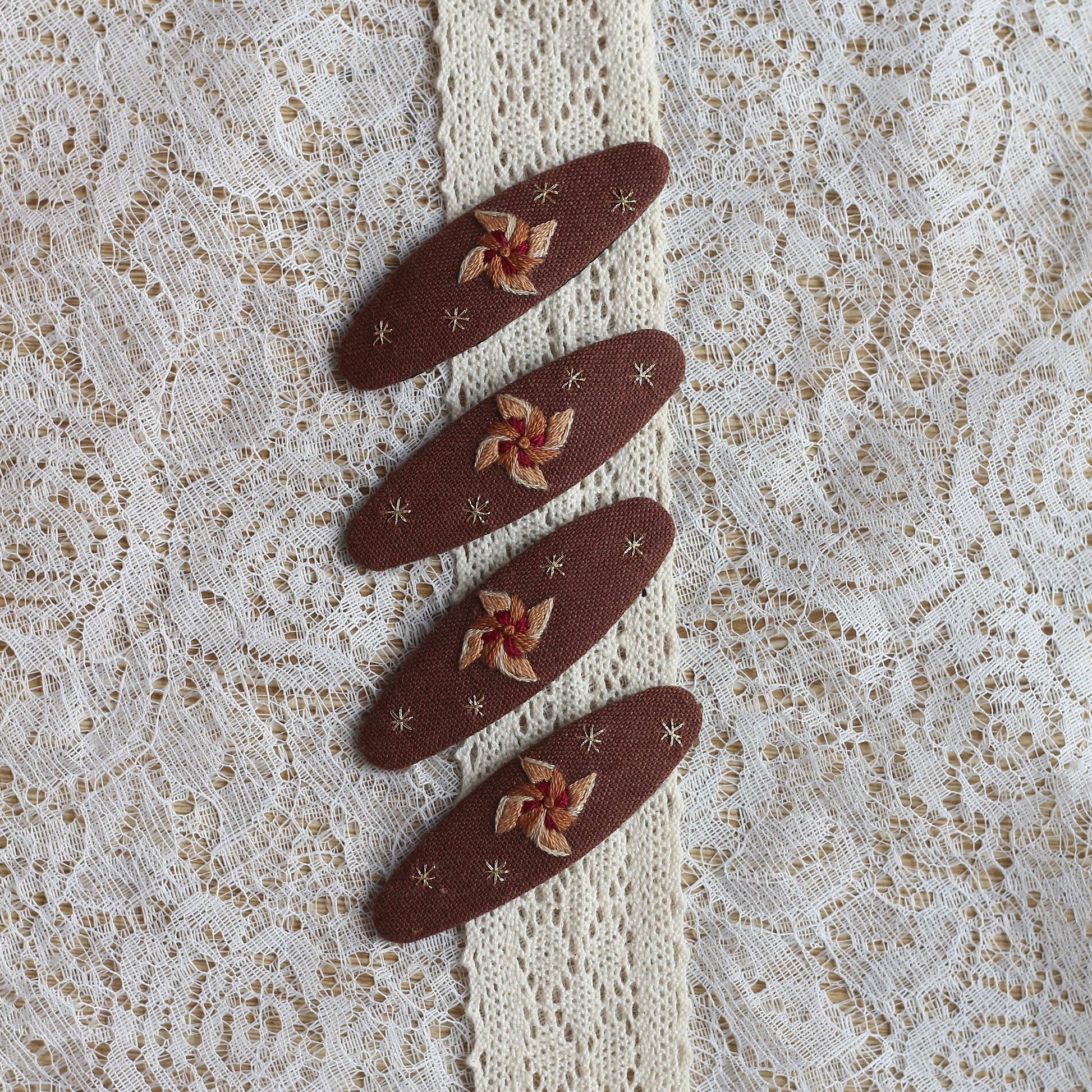 Hand-embroidered hair pins. Bakery-themed hair pins sold individually.