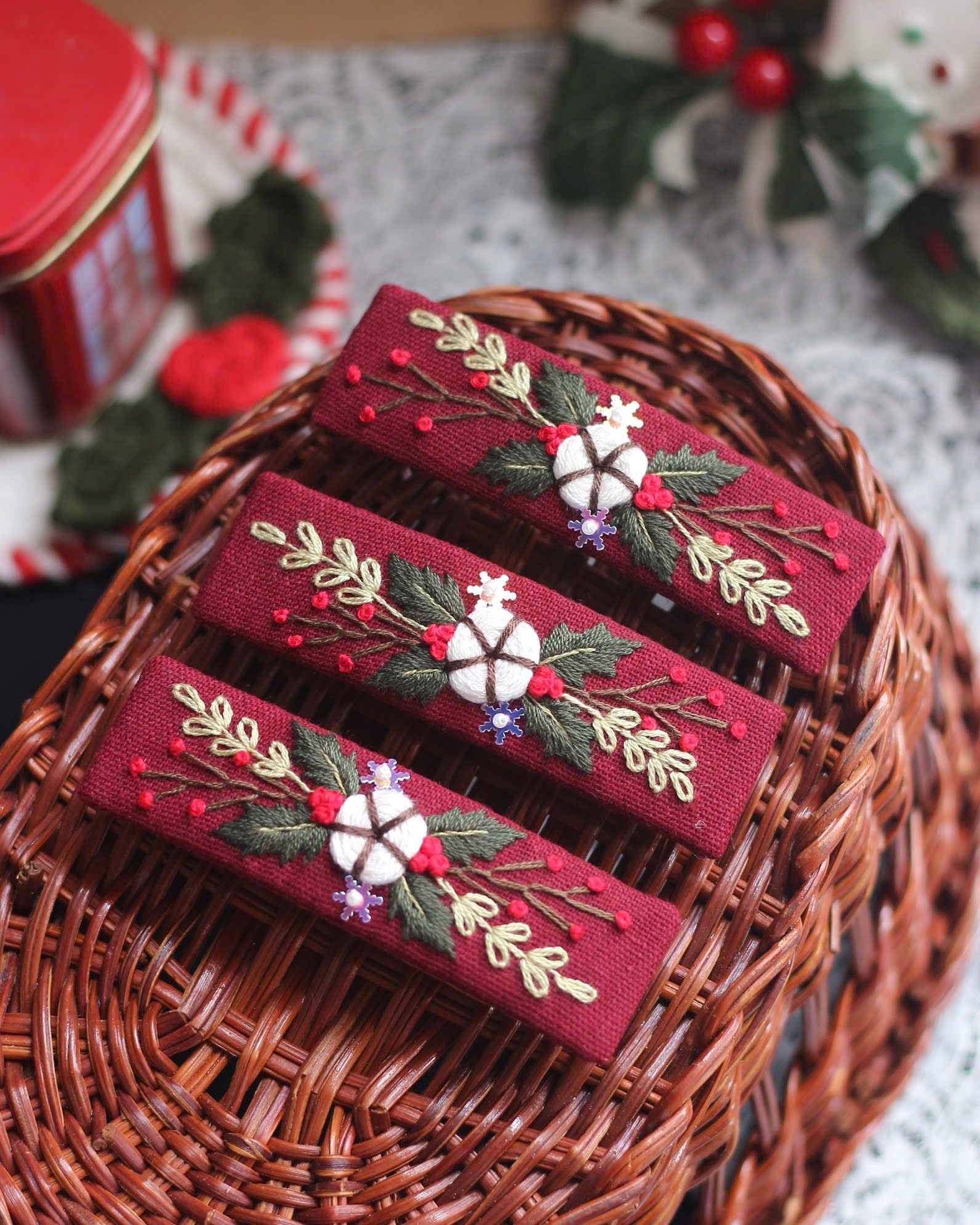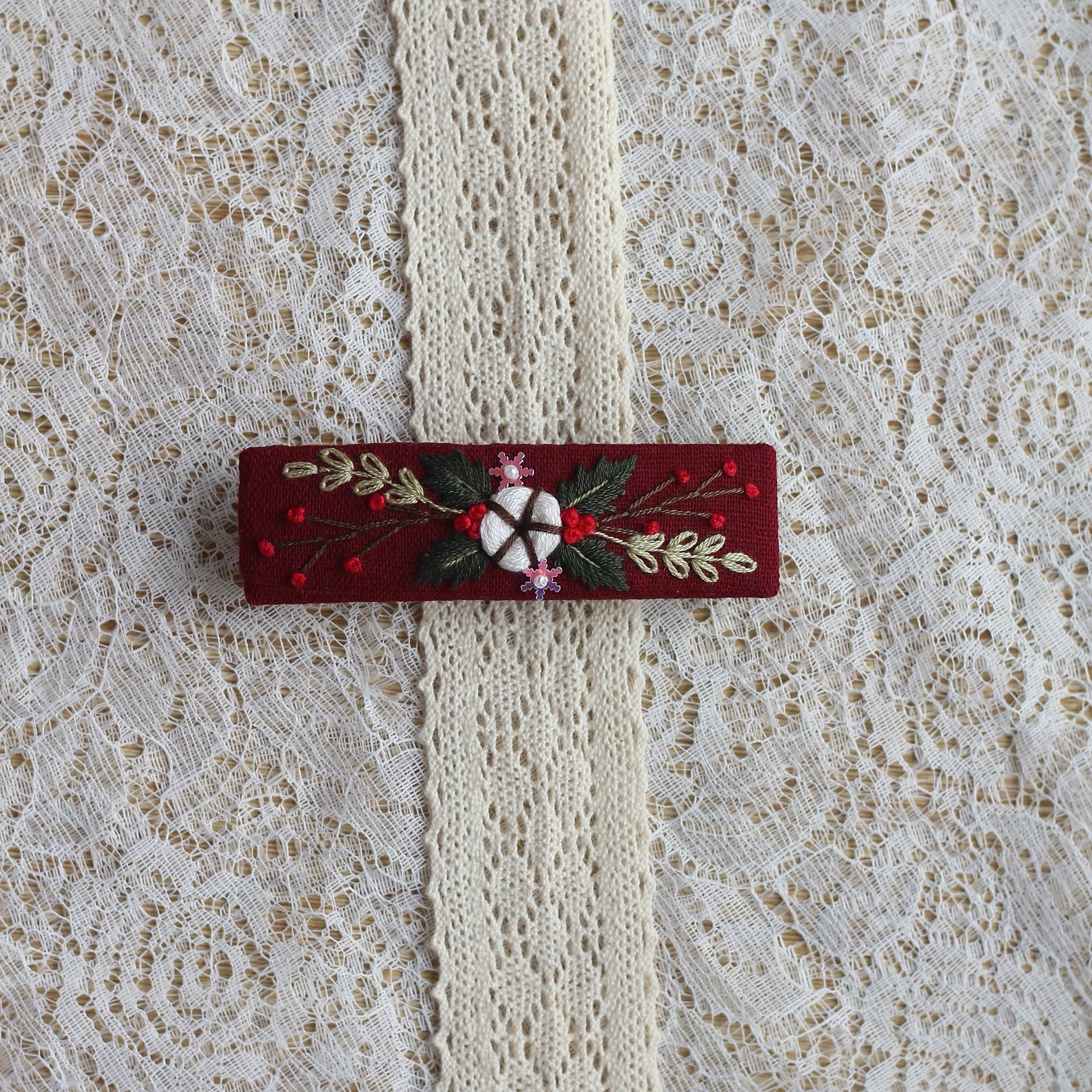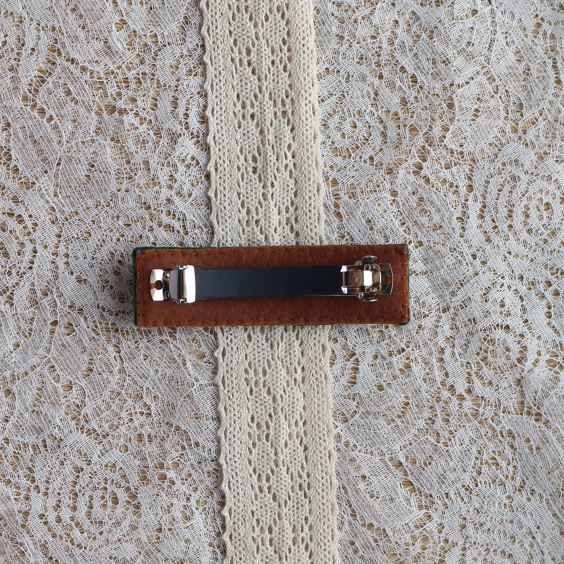 This hair clip, adorned with a delicately embroidered floral pattern, is skillfully handmade from recycled natural materials. Each piece is unique, as the materials have been given a new life in this beautiful accessory. The refined embroidery stitches and natural tones create a sustainable and elegant accessory. A perfect gift for anyone who appreciates both style and the environment.