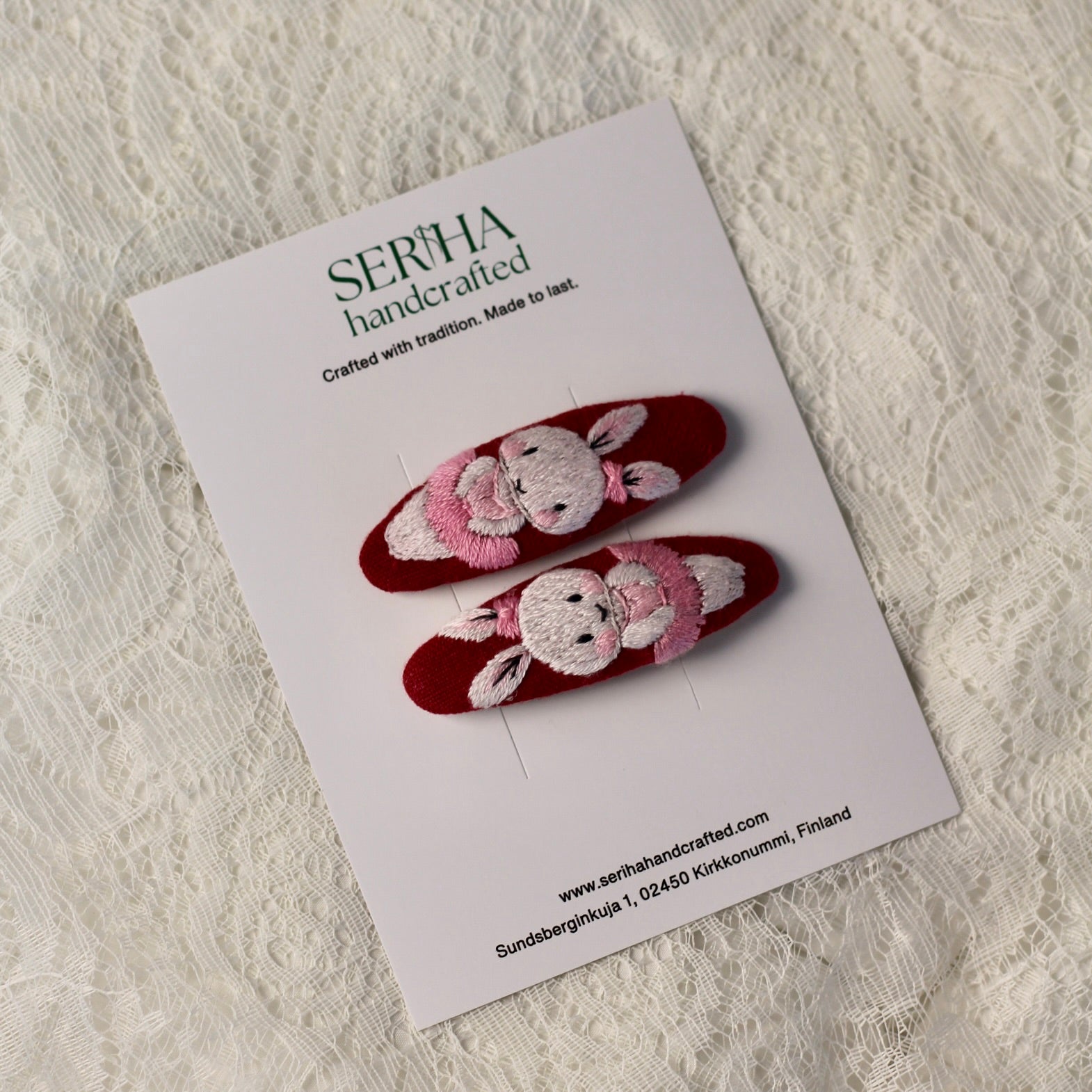 Let a little girl’s personality shine with this adorable hand-embroidered bunny hairpin. Made from soft and durable materials, this hairpin is the perfect addition to any style. Whether it’s daycare, the playground, or a party, this playful bunny is sure to bring a smile. Each hairpin is unique and lovingly handmade, combining style with sustainability.