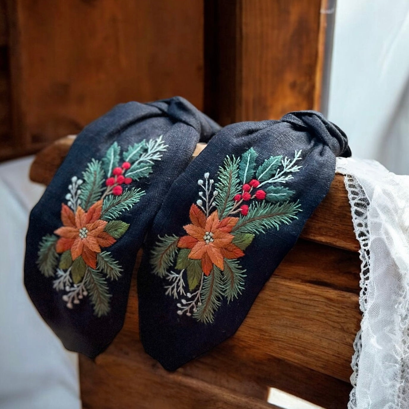 This hairband is decorated with a delicate embroidered floral pattern and is expertly handcrafted from recycled natural materials. Each piece is unique, as the materials have been given a new life in this beautiful piece of jewelry. The sophisticated embroidery stitches and natural tones create a durable and elegant ensemble. The perfect gift for anyone who appreciates both style and the environment.
