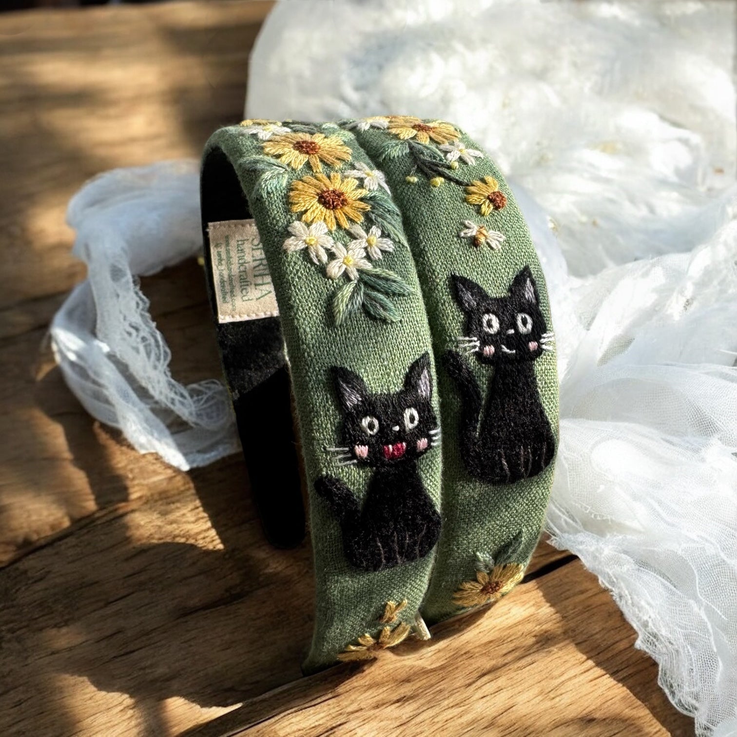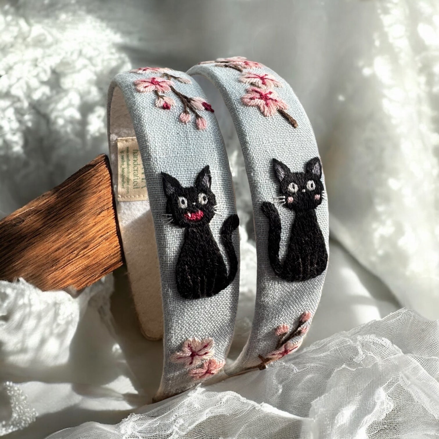 Our adorable embroidered pattern evokes the enchanting world of Ghibli and makes this hair clip a unique addition to your style. The headband is expertly handcrafted from recycled natural materials, and each piece is unique – the materials have been given a new life in this charming accessory. The sophisticated embroidery stitches and natural tones create a durable and charming ensemble. The perfect gift for anyone who values both personal style and the environment.
