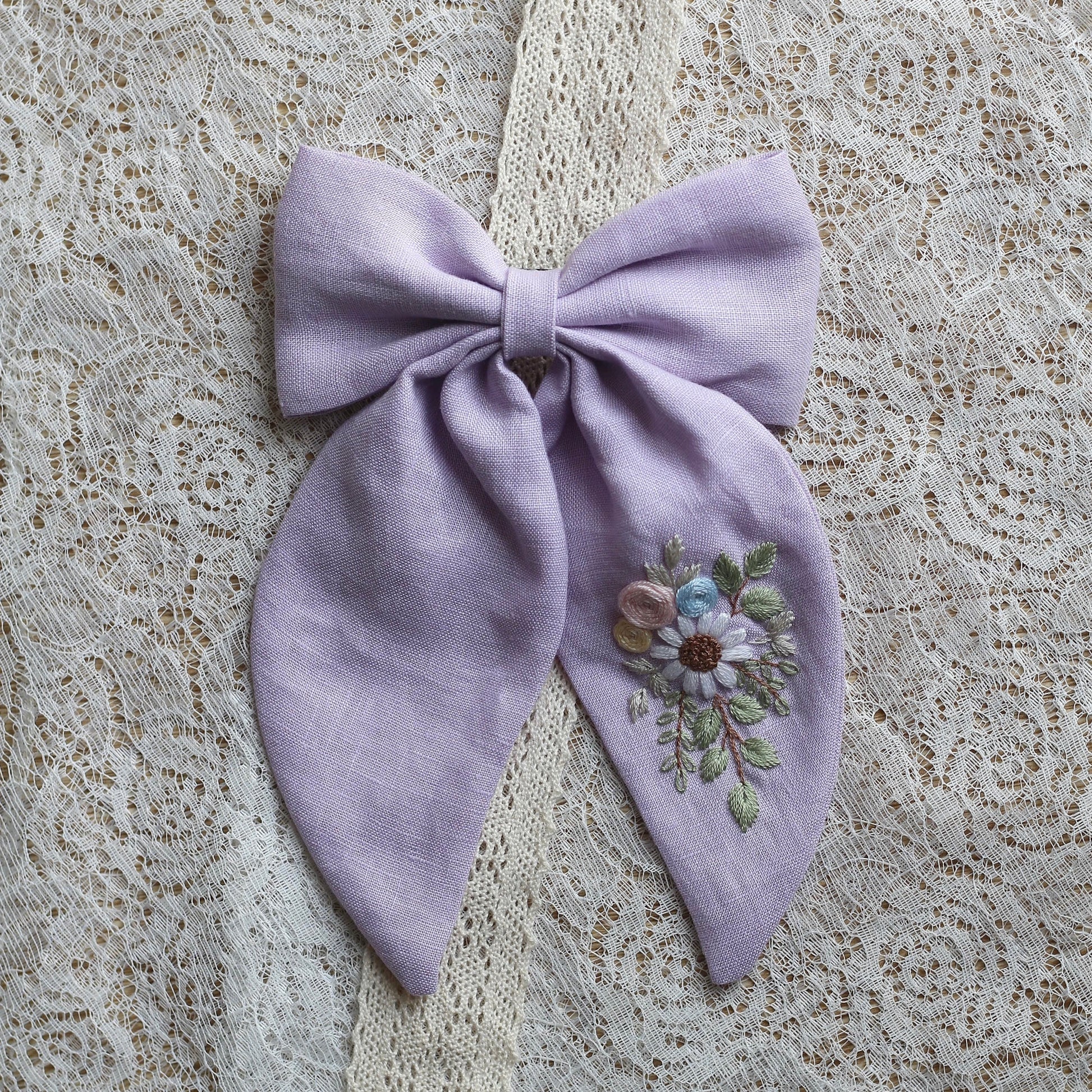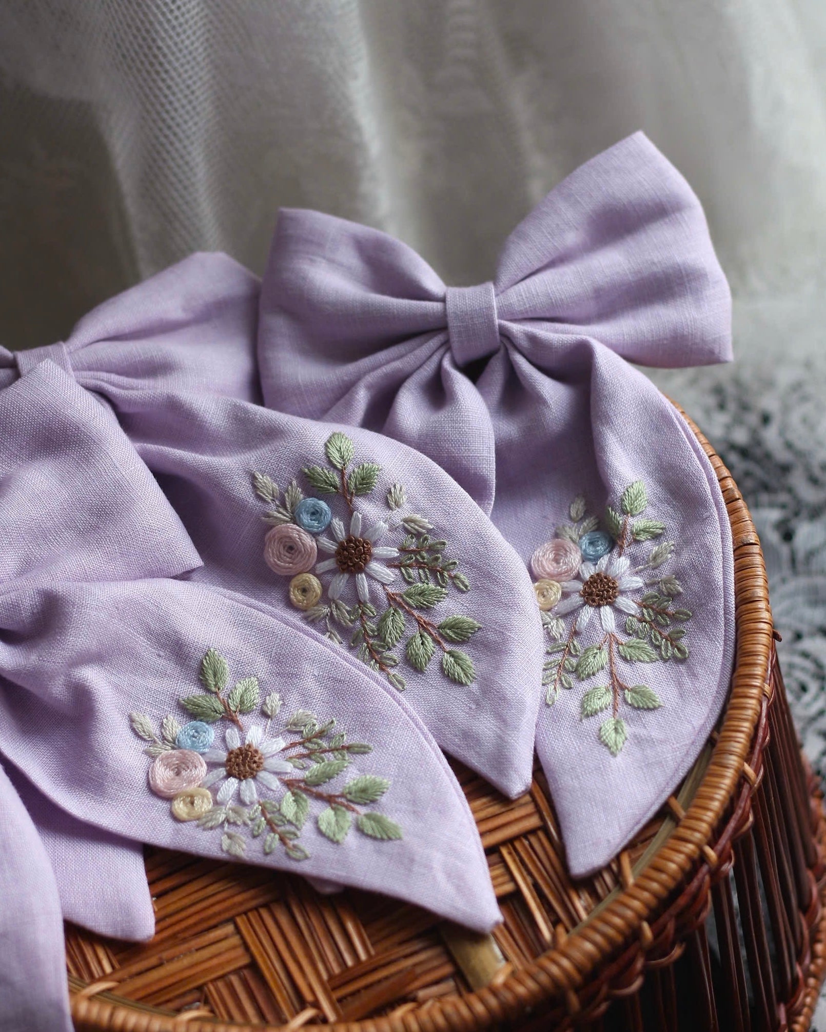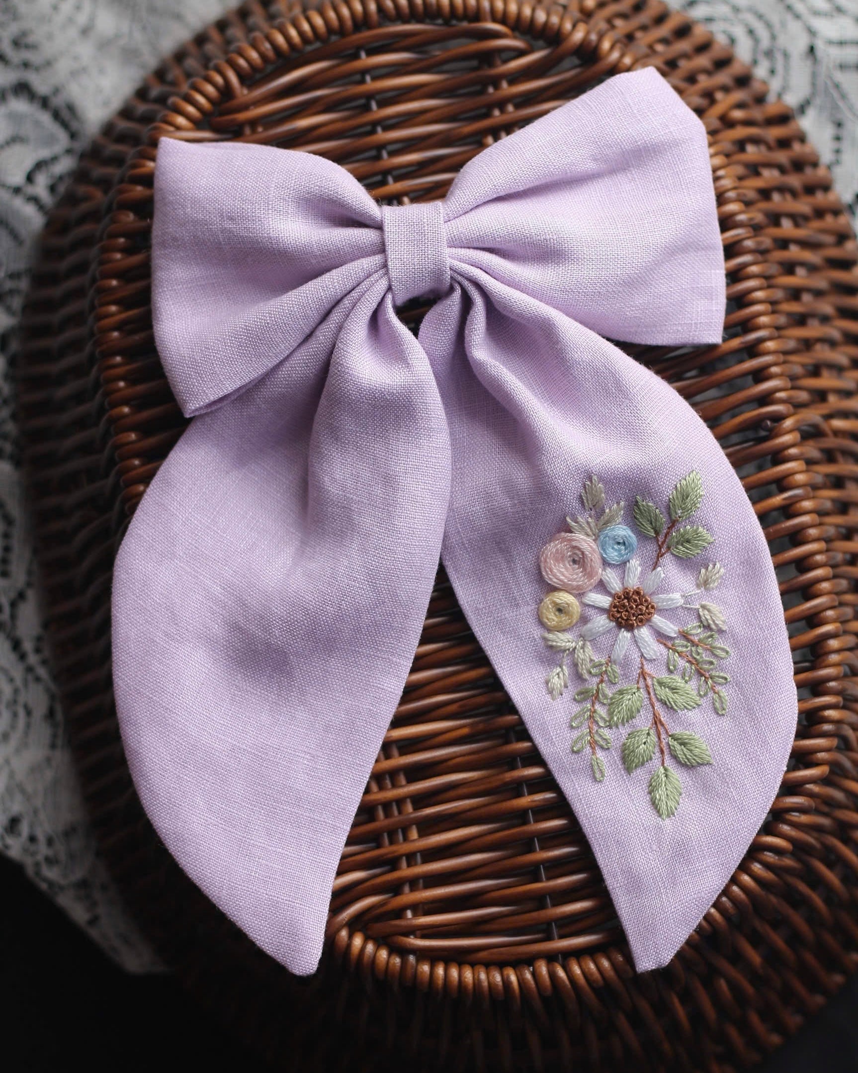 This delicately embroidered floral bow is expertly handcrafted from recycled natural materials. Each piece is unique as the materials have been given a new life in this beautiful piece of jewelry. The sophisticated embroidery stitches and natural tones create a durable and elegant ensemble. The perfect gift for anyone who values both style and the environment.