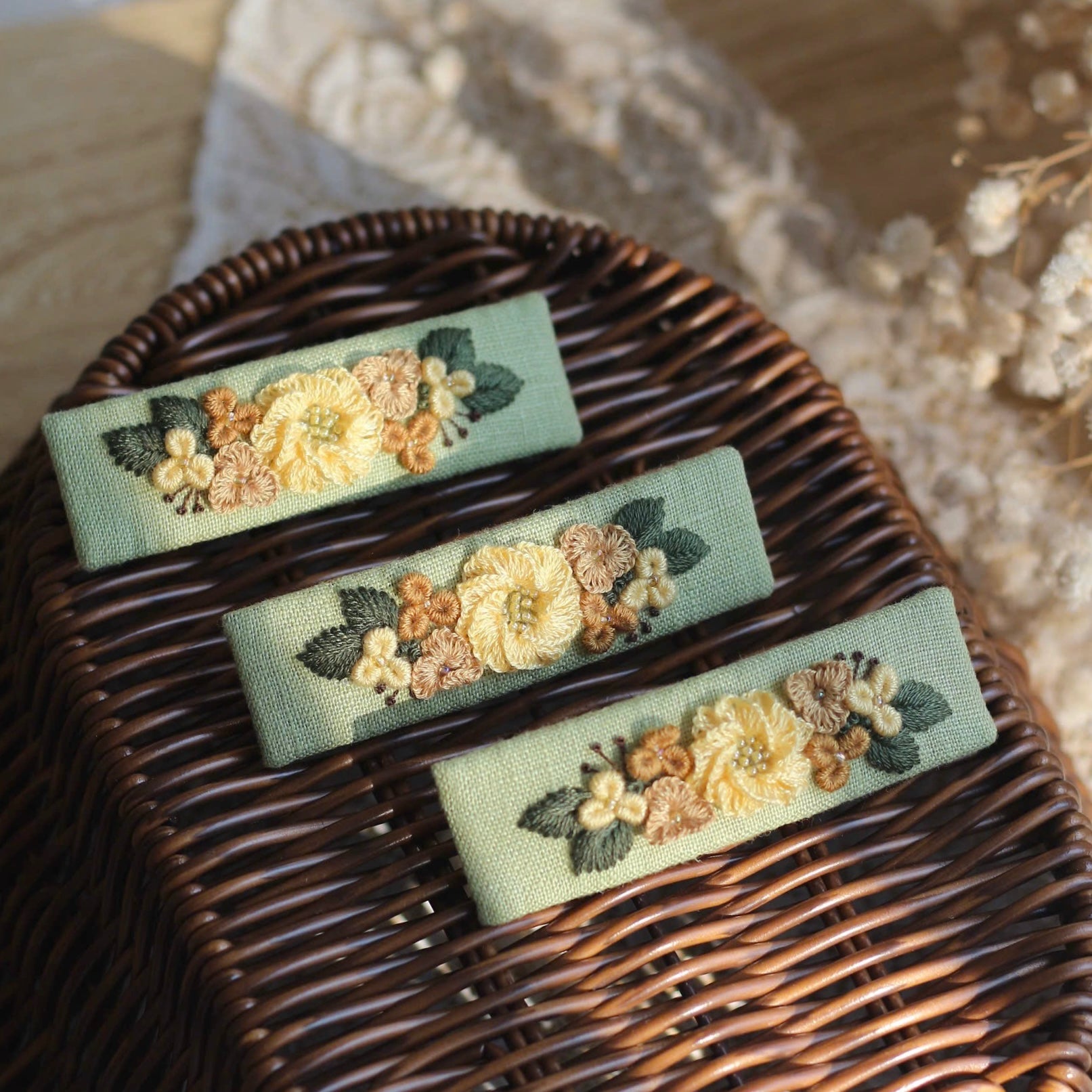 This delicately embroidered floral hair clip is expertly handcrafted from recycled natural materials. Each piece is unique as the materials have been given a new life in this beautiful piece of jewelry. The sophisticated embroidery stitches and natural tones create a durable and elegant piece. The perfect gift for anyone who values both style and the environment.