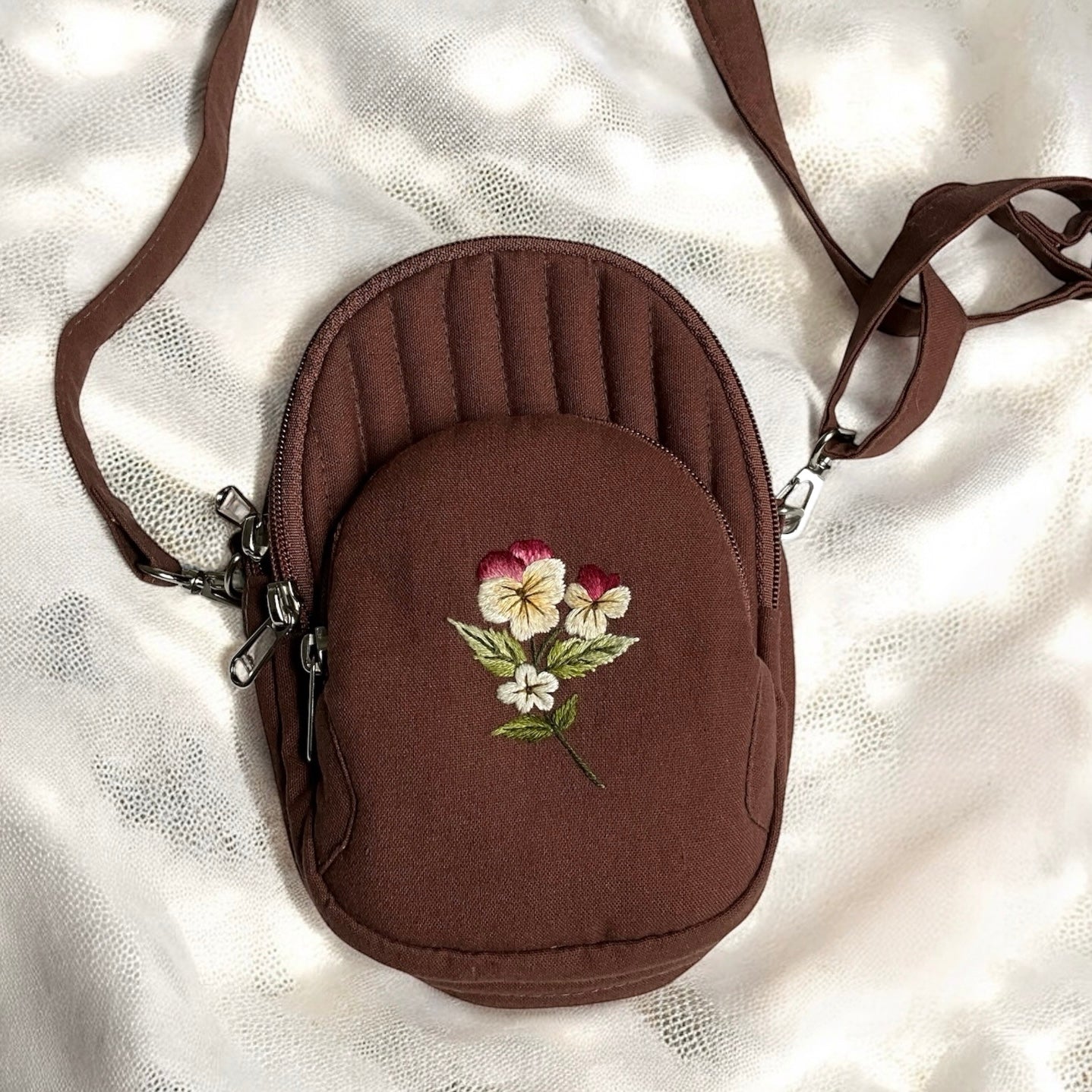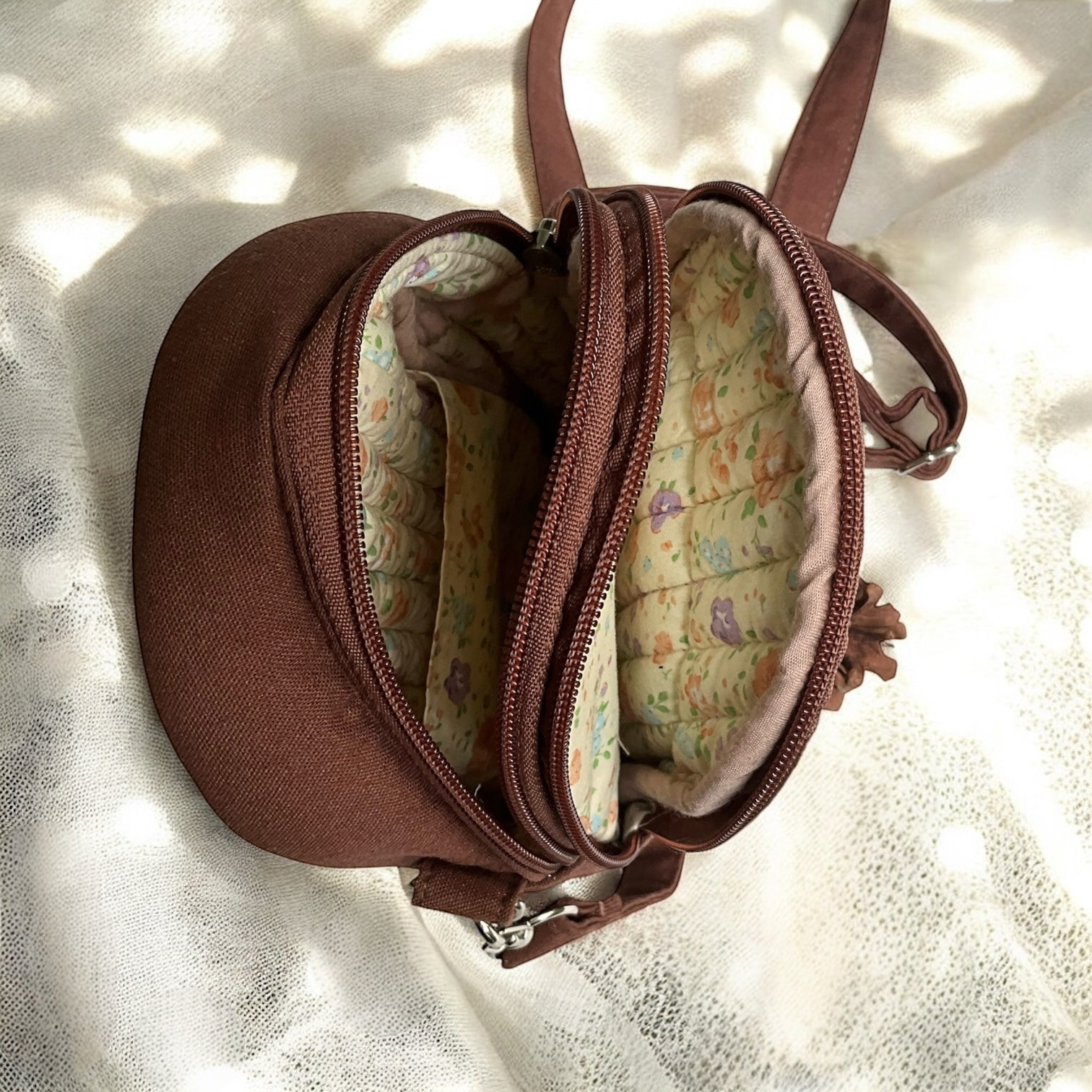 Our handmade shoulder bag features three roomy zippered pockets to keep all your essentials organized. Inside the large main pocket, there is also a small inner pocket where you can safely store keys, cards, or other small important items.