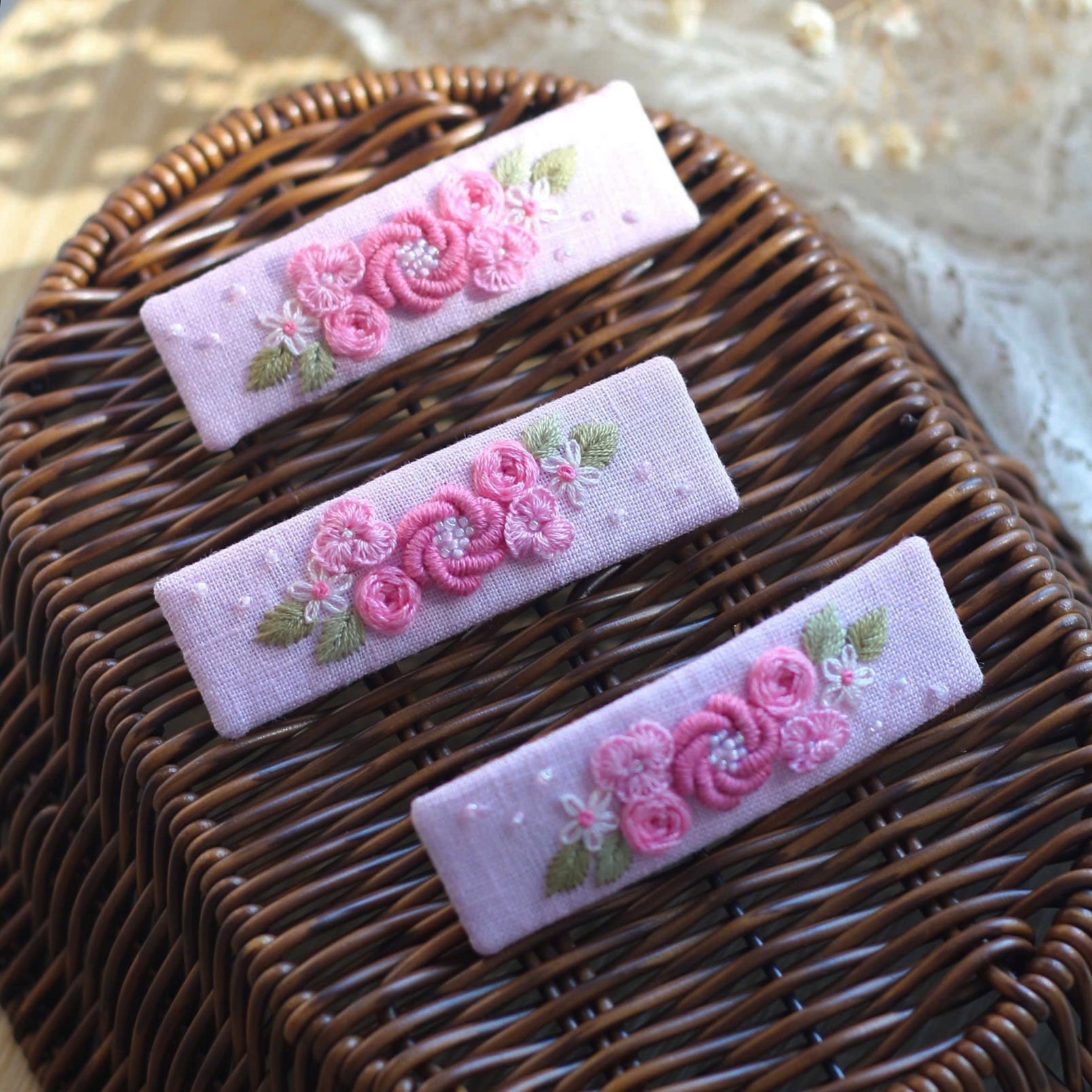 Hand-embroidered hair clips