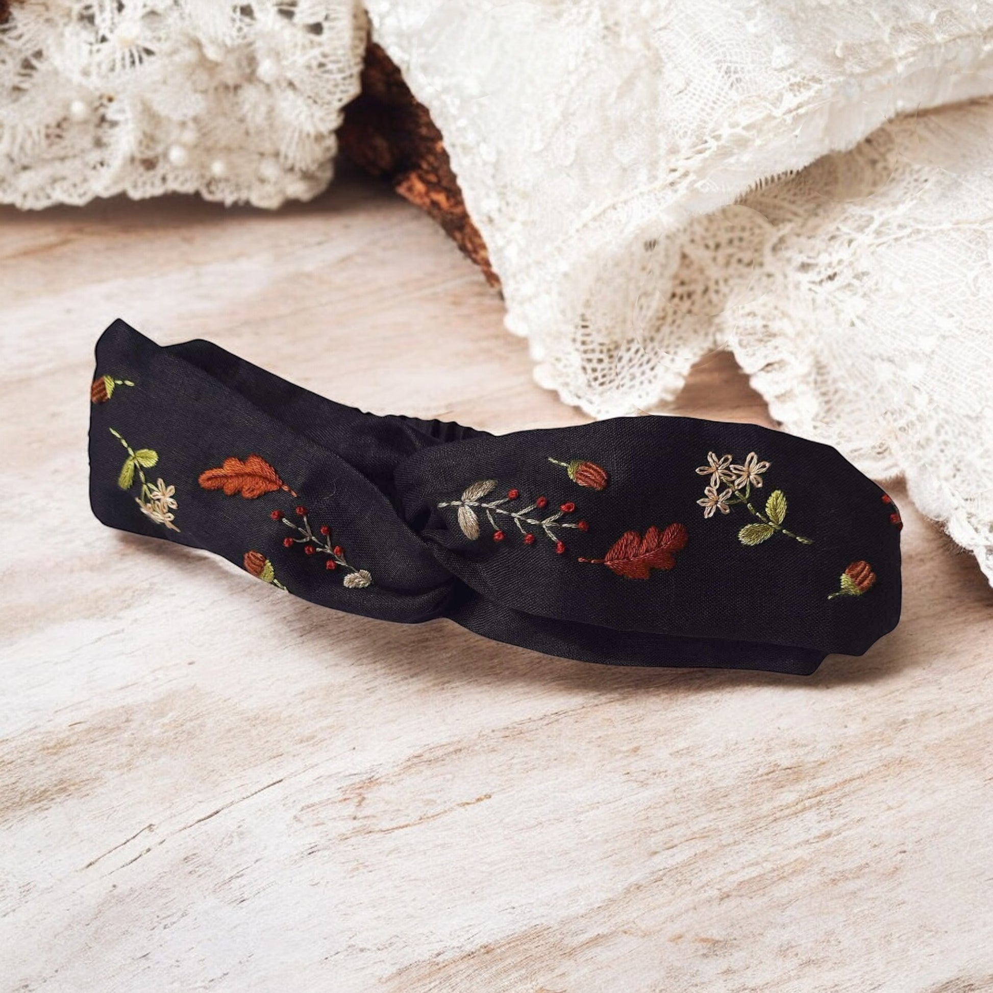This elastic headband, adorned with delicate two-sided embroidered floral patterns, is skillfully handcrafted from recycled natural materials. Each piece is unique, as the materials have been given a new life in this beautiful accessory. The refined embroidery stitches and natural tones create a durable and stylish piece. A perfect gift for anyone who appreciates both style and the environment.