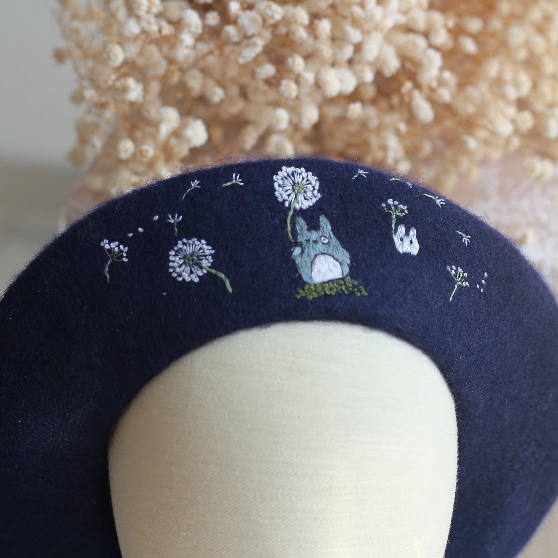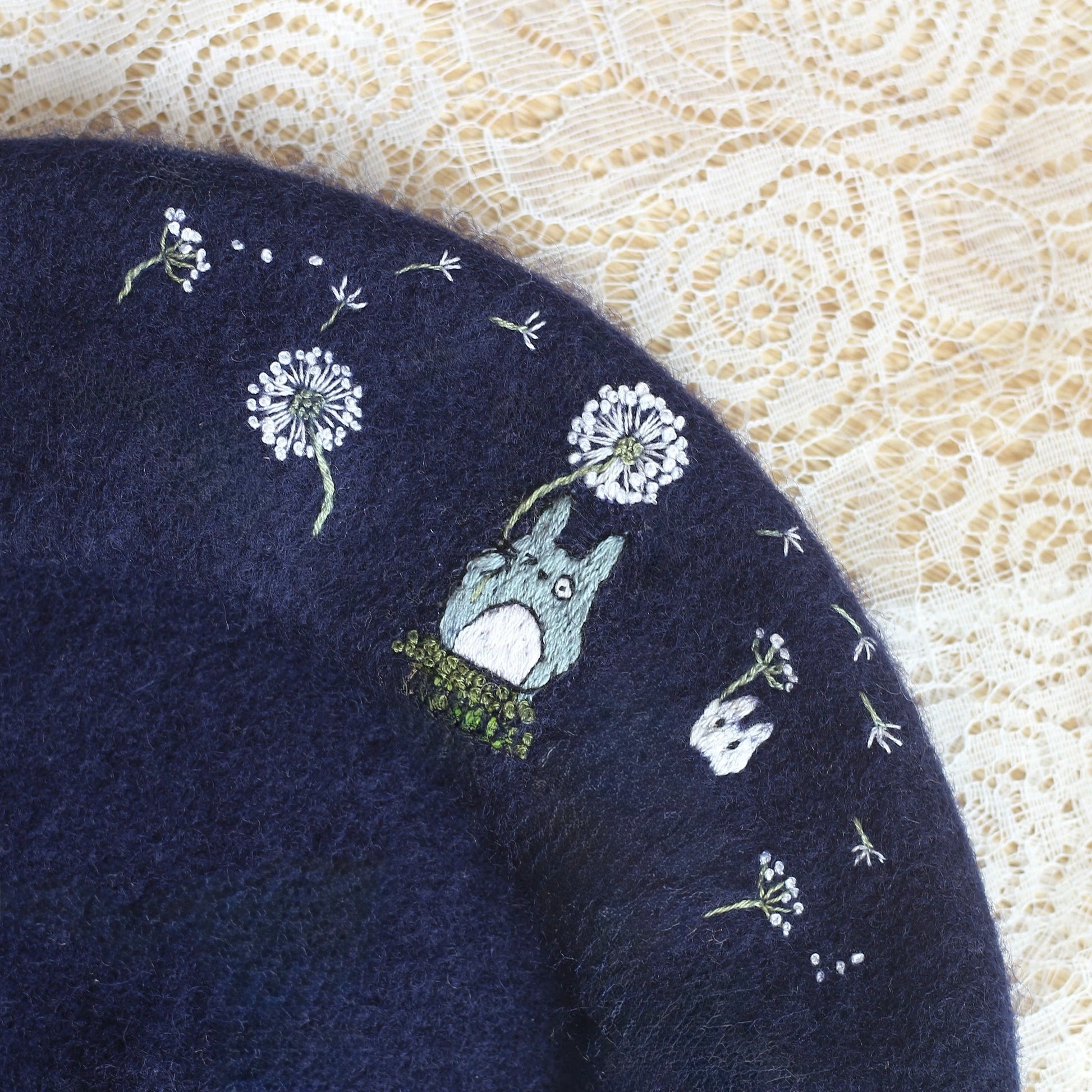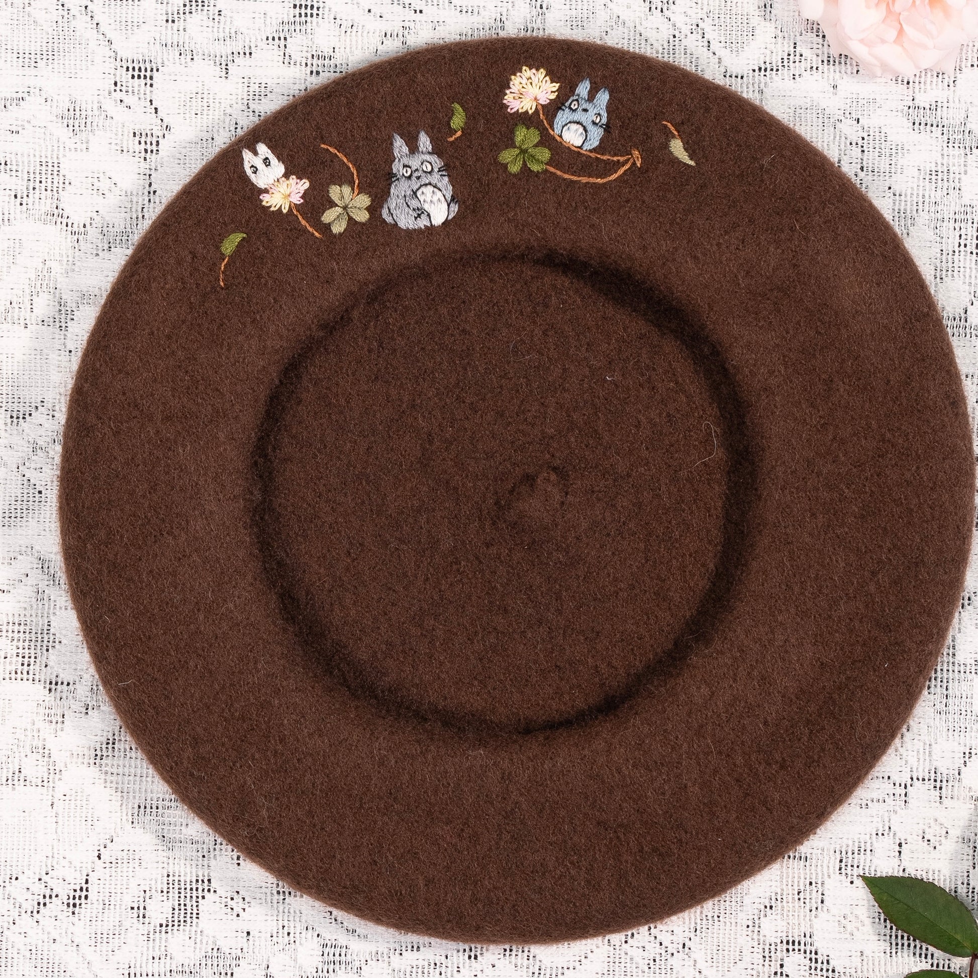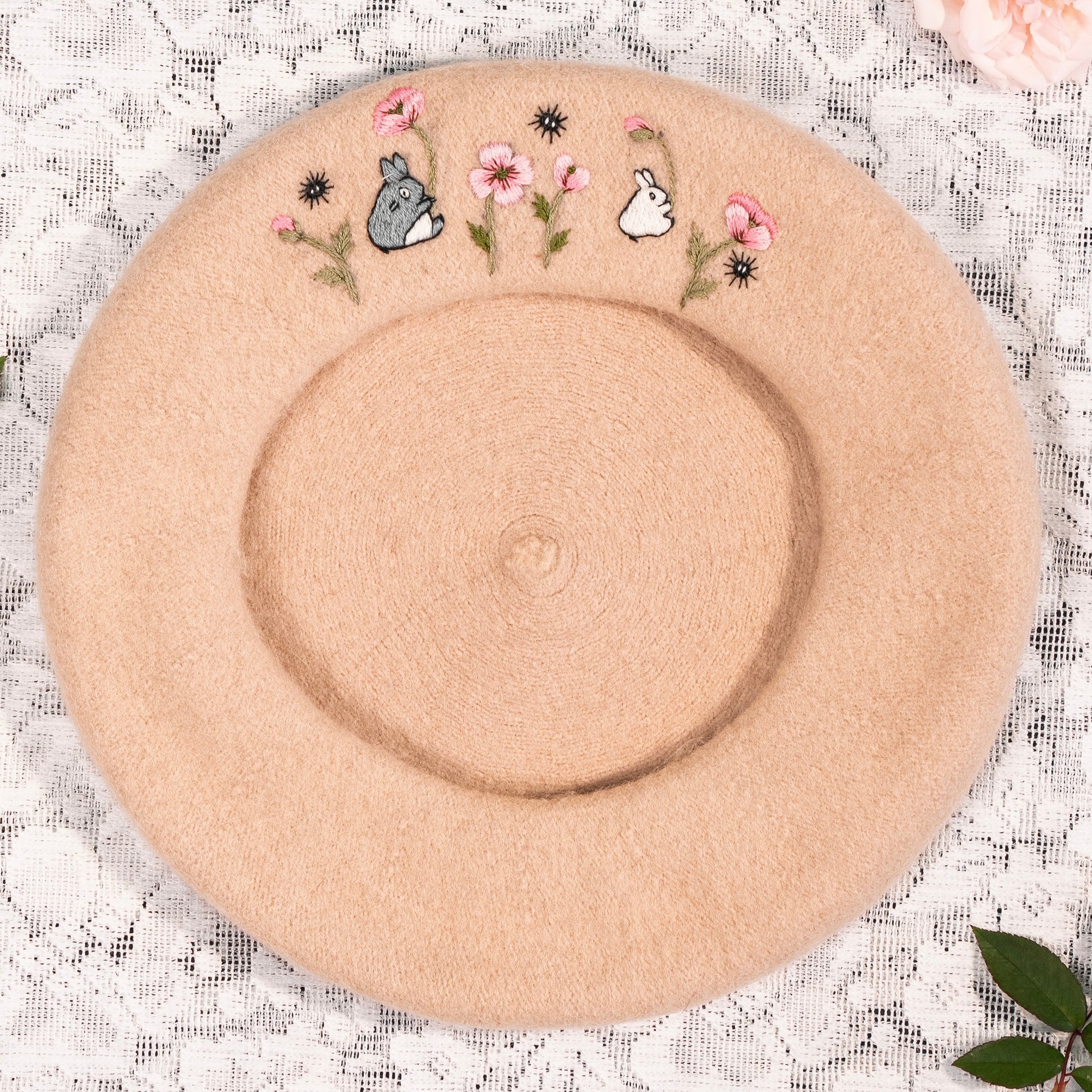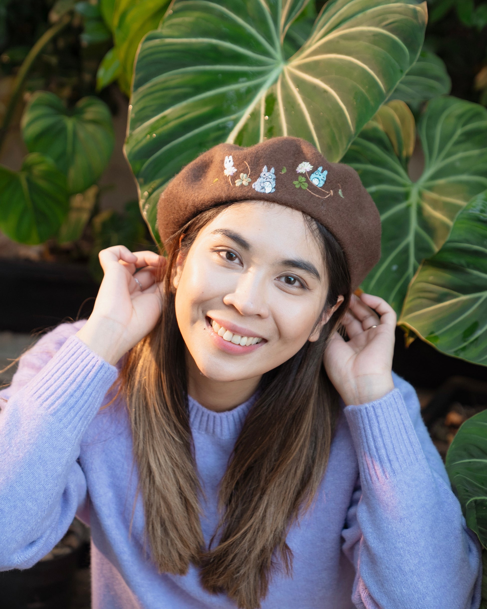 This hand-embroidered beret is more than an accessory, it's a little story made by hand. Made from 100% wool, the beret is patiently embroidered stitch by stitch, taking time, care and intention to shape every detail.