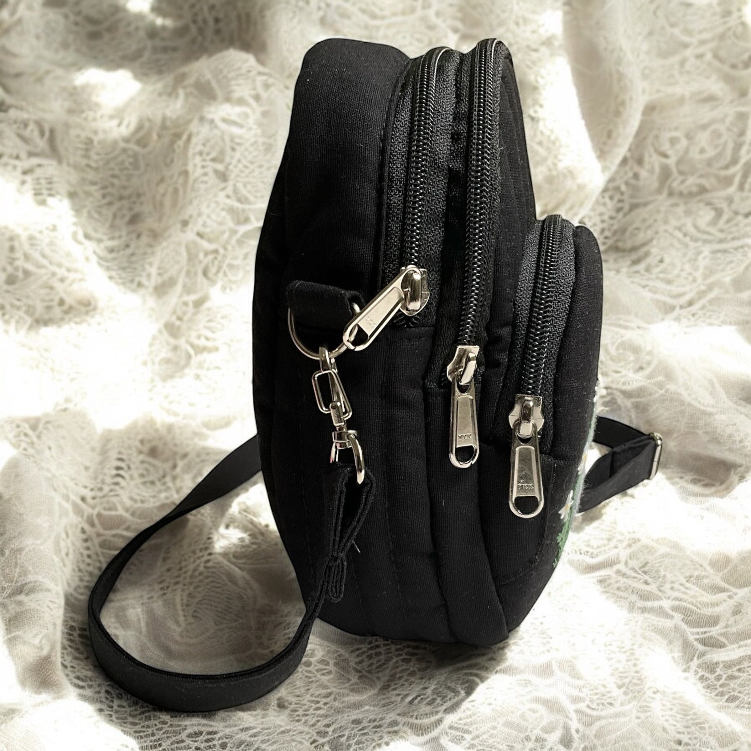 Käsintehty olkalaukkumme sisältää kolme tilavaa taskua vetoketjuilla, jotka pitävät kaikki tärkeät tavarasi järjestyksessä. Suuren päällisen taskun sisällä on myös pieni sisätasku, jossa voit säilyttää avaimet, kortit tai muut pienet tärkeät tavarat turvallisesti.